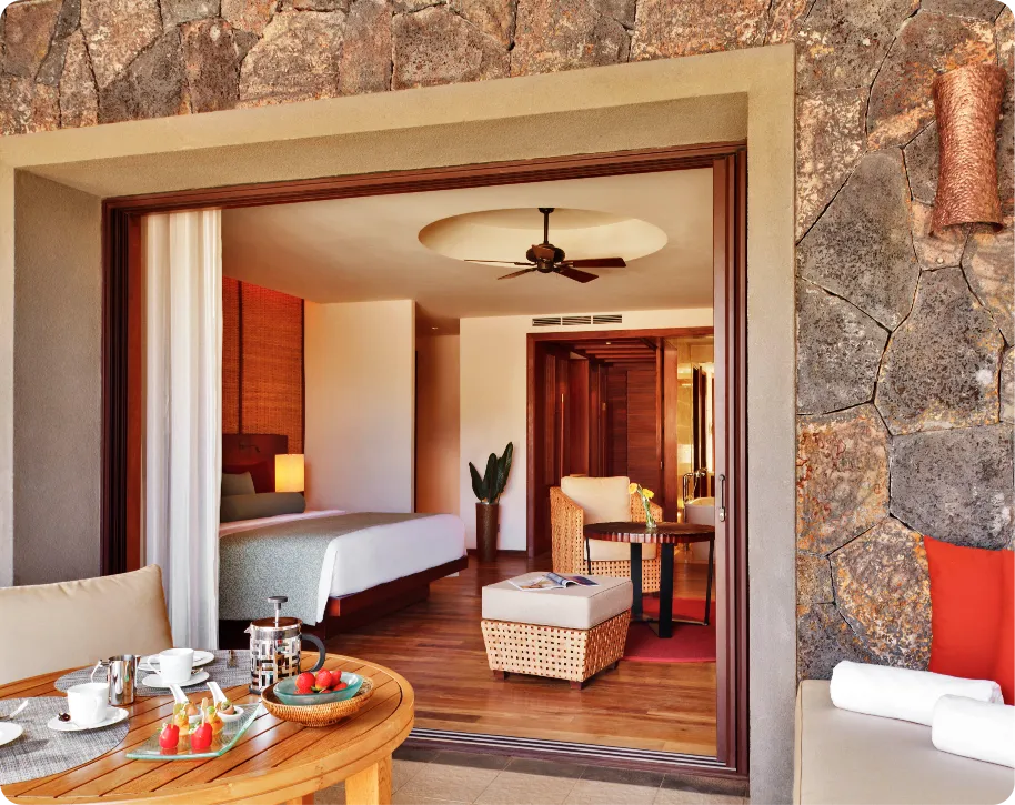 您的私人花园是可享受惬意放松以及狂欢时刻的一个完美的热带地点。 赤脚踏踩在柔软的草地上,呼吸着朝晨清新的空气,耳边听着阵阵悦耳的鸟鸣声中欣赏椰子树摇曳的景象。油然而生起活于当下,珍惜当下的感觉。宽敞的木制露台营造出一种温馨氛围,风景如画的环境中享用美味早餐,高雅的私人晚餐,惬意放松的同时还可欣赏毛里求斯惊艳日落永恒瞬间。